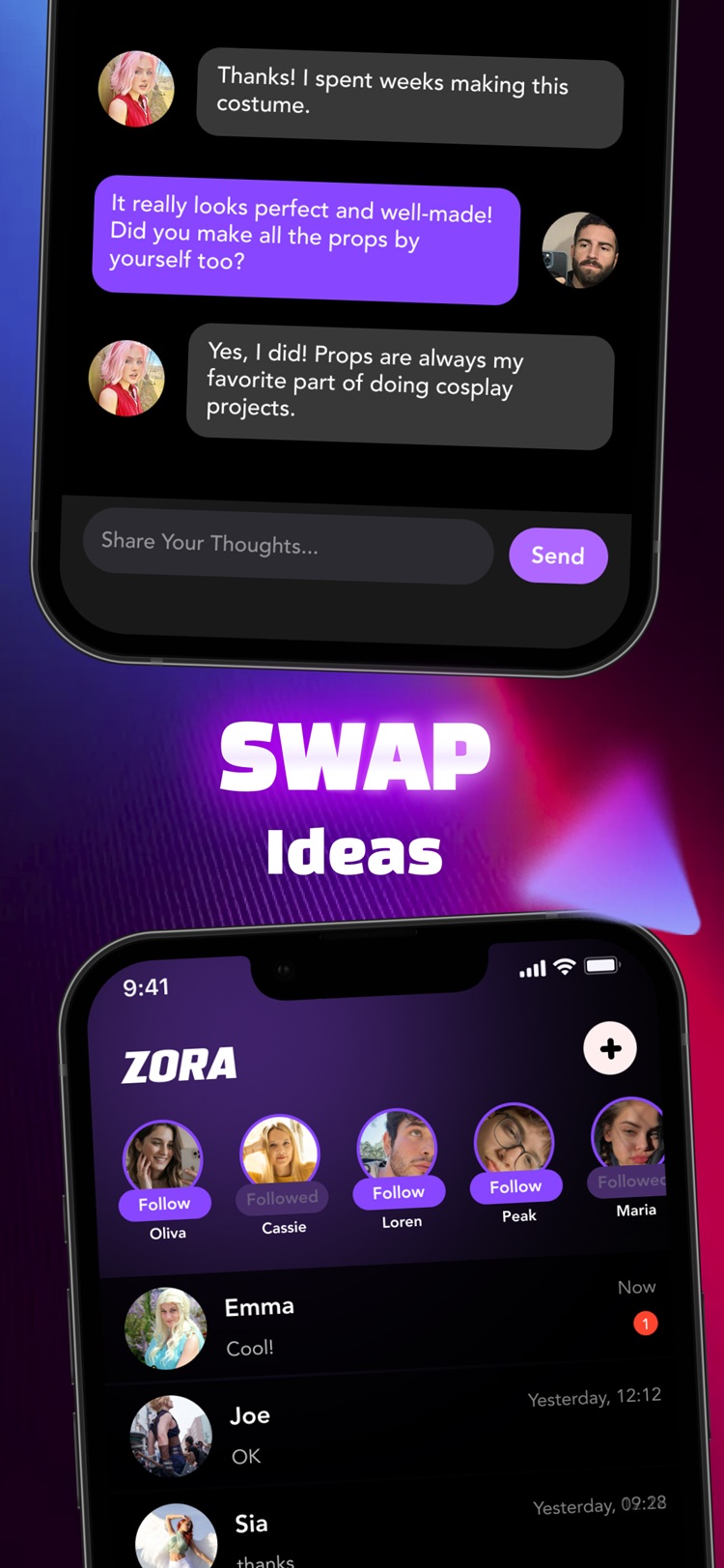 Zora is a social app designed for cosplay lovers. It connects fans and creators from around the world through photos, videos, and live chats. Share your cosplay looks, and make new friends who share your passion.